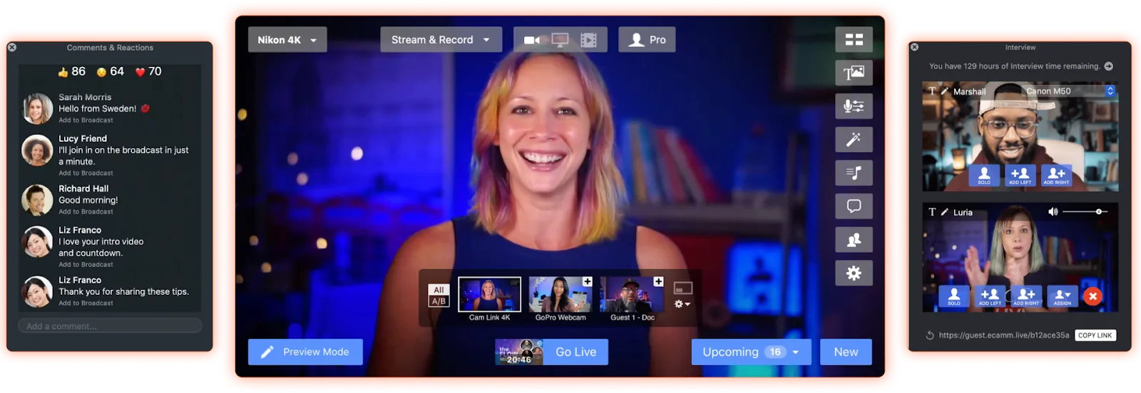 Ecamm es una herramienta de vídeo en directo y un conmutador de vídeo todo en uno diseñado exclusivamente para Mac.