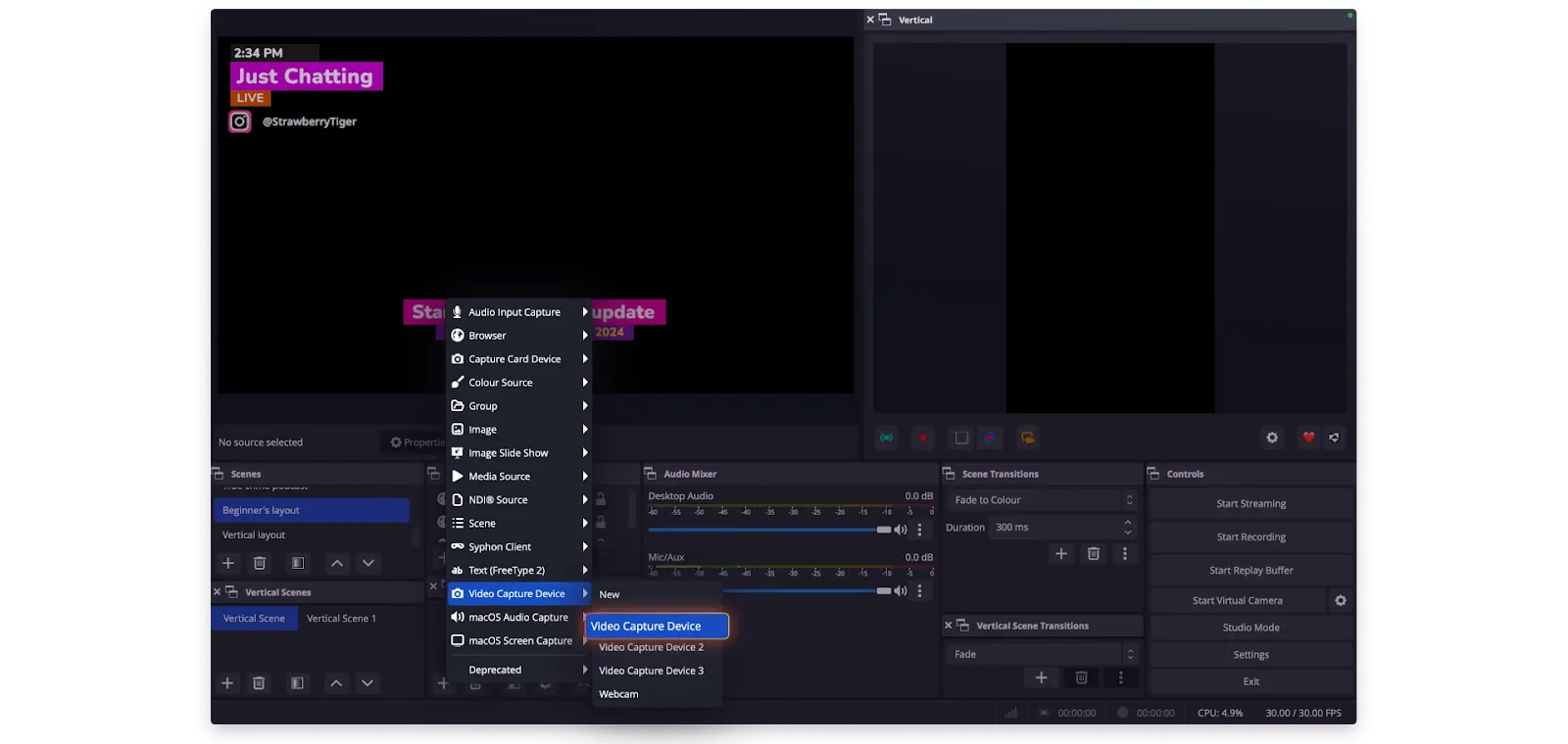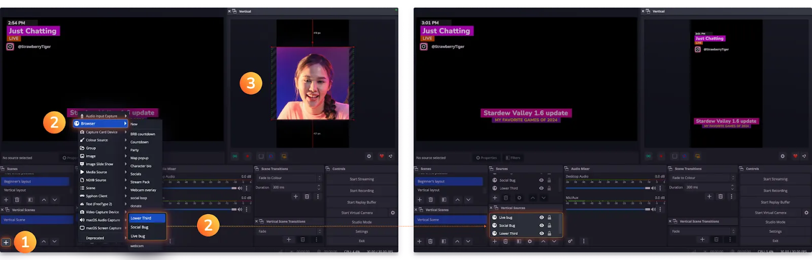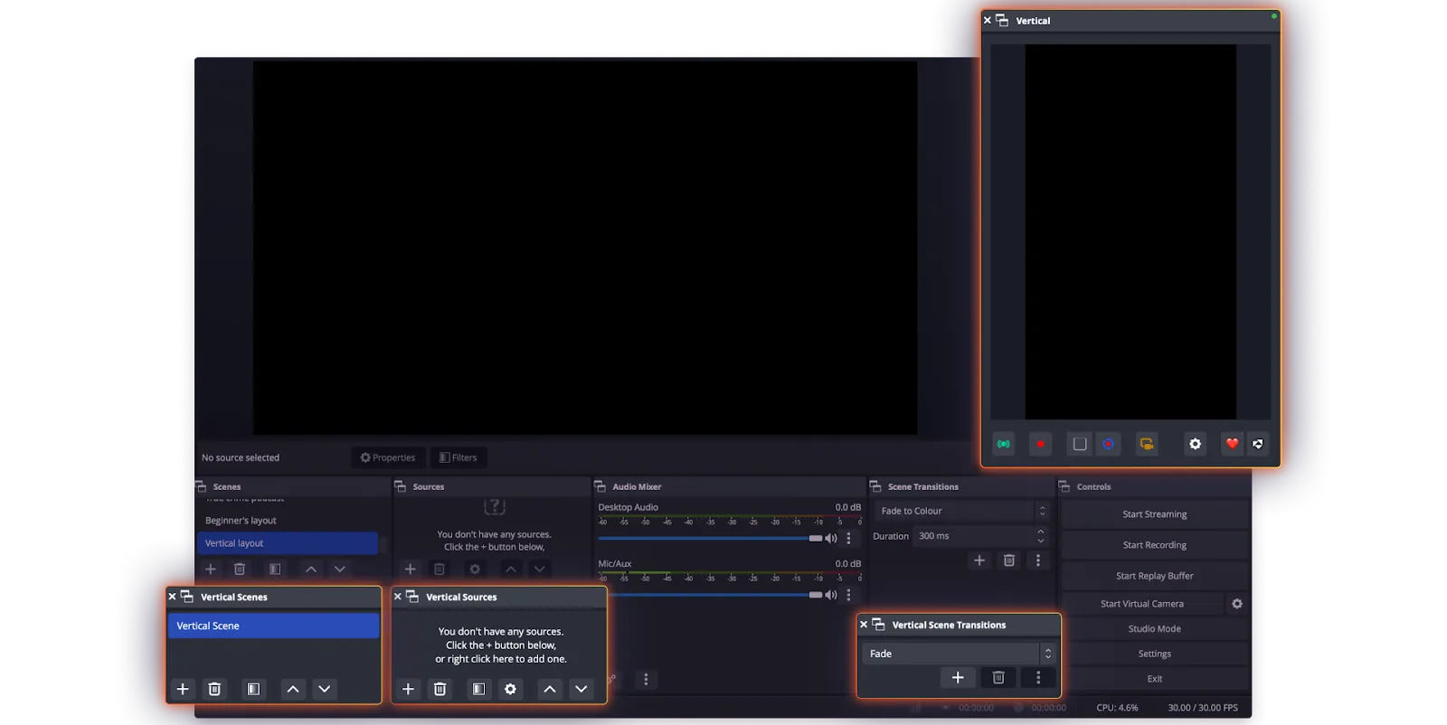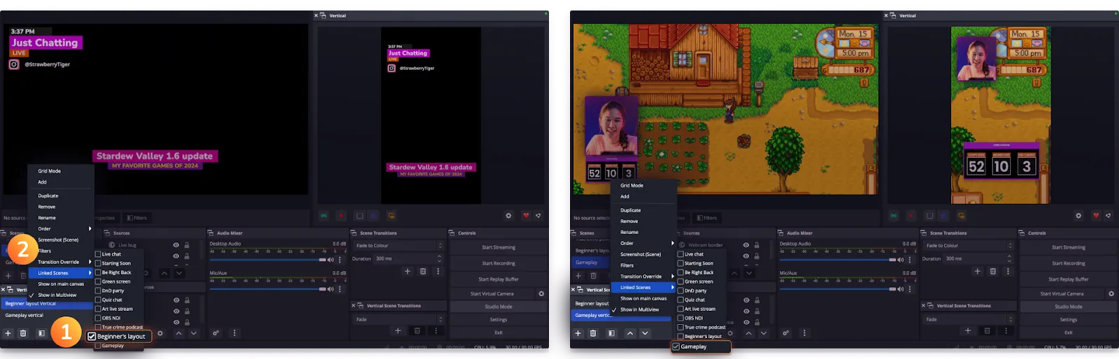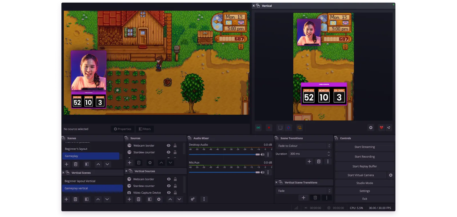 You can now create a vertical version of any of your existing OBS scenes, so that you can stream both versions at the same time and while delivering consistent, high-quality experiences.