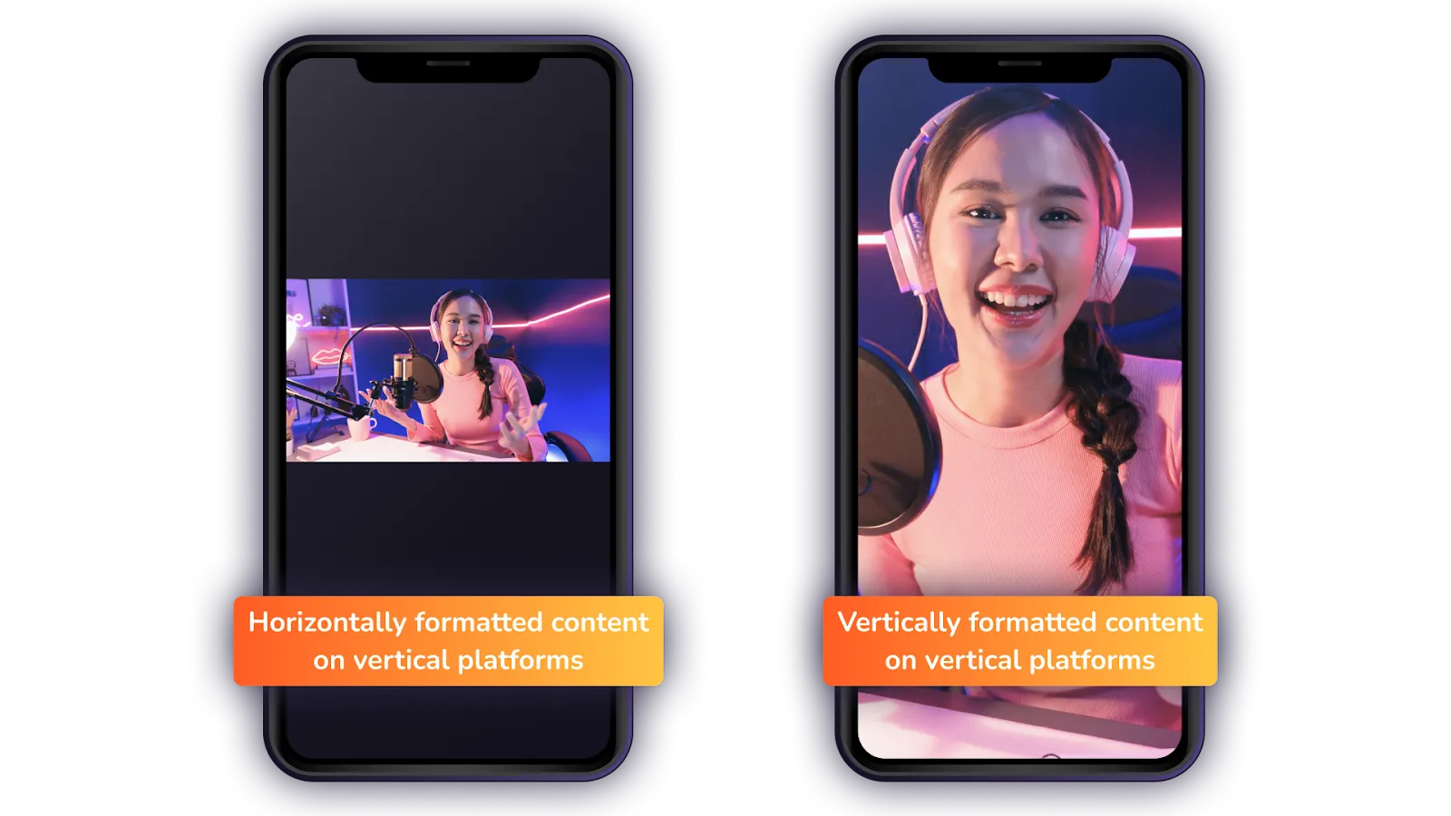 You can just multistream your horizontally formatted content on vertical platforms. However, the black areas above and below your content might look distracting, and key details might be too small for viewers to see. That’s why it’s important to stream in both horizontal-friendly formats and vertical formats.