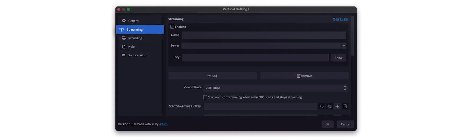 If you’re wondering how to change OBS to vertical, the Aitum Vertical OBS plugin is a great option out of those available on the market. Aitum’s free plugin is compatible with Apple, Windows and Linux, while working seamlessly with OBS software – which remains a favorite among pro streamers. By avoiding having to run instances of OBS to stream and record in different formats, you’ll save a lot of time, hassle, and processing power.