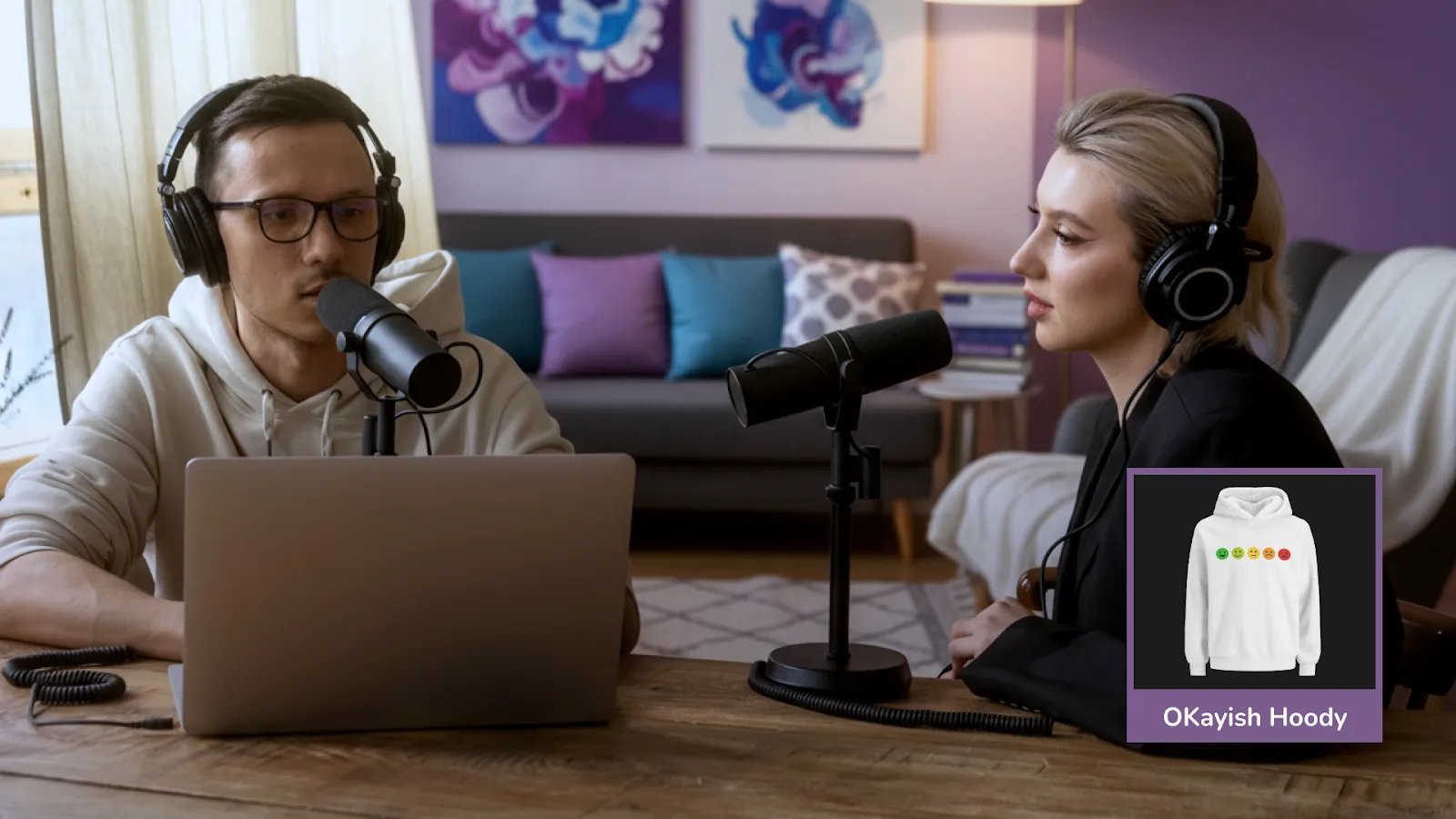 Your live podcast doesn’t have to just be you and your guest sitting at a table and talking. Adding an activity can be fun for both you and your viewers alike, and act as an icebreaker for guests on your show. A lot of interviewers use this tactic to keep things fun – think of Hot Ones or BuzzFeed Celeb’s puppy interviews. (You can even share how fast your pulse is racing on screen with a Pulsoid overlay.)