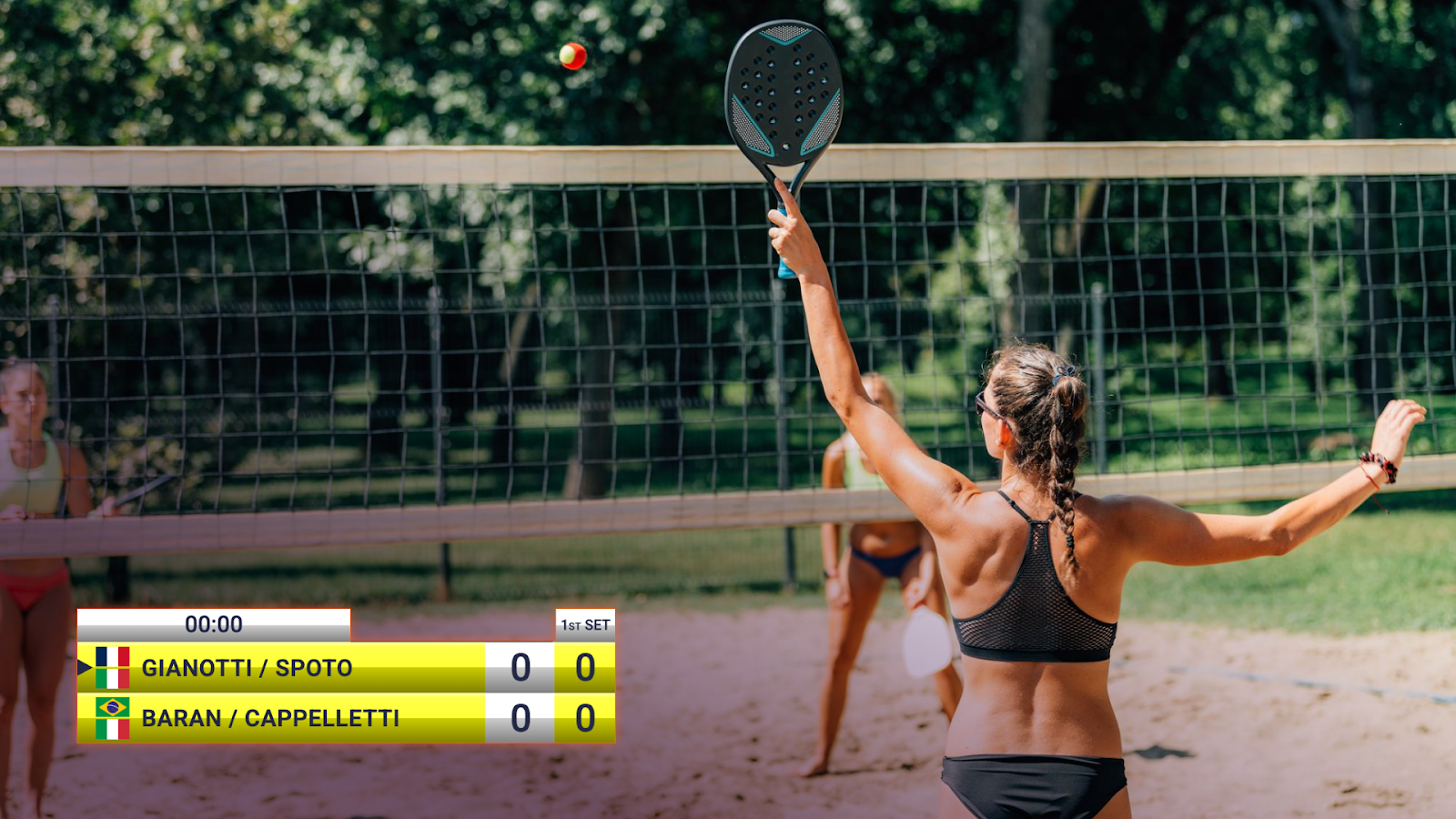 You can also add text overlays to introduce your tournament and any commentators, and to announce upcoming matches. To get an idea of what that can look like when put together, check out our overlays as featured on the 2024 European Beach Tennis Championships, including: