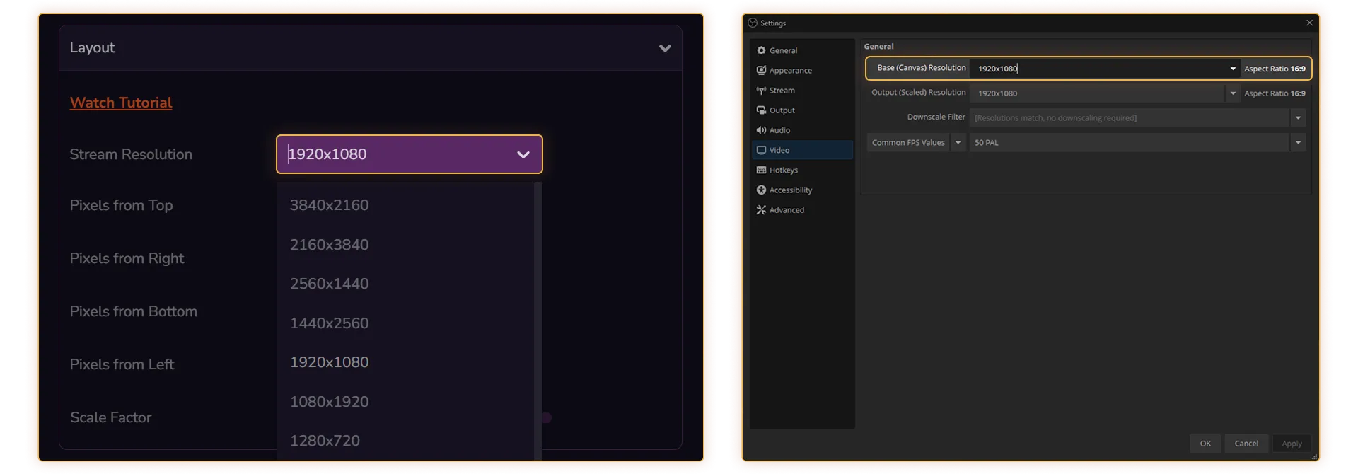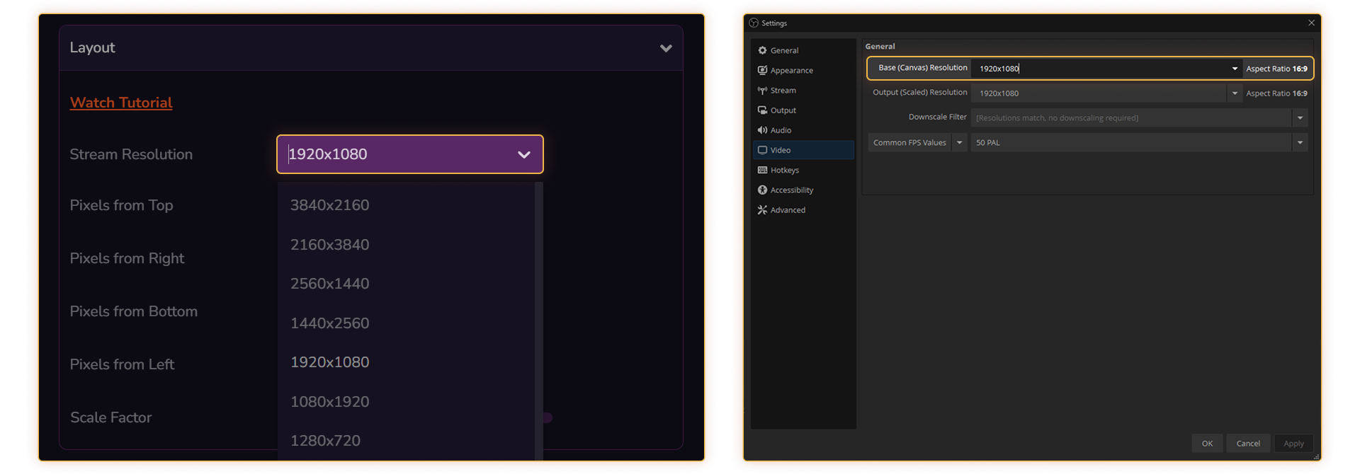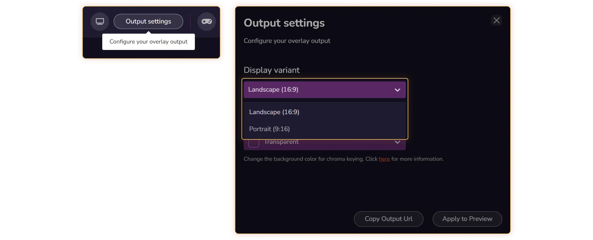 Add the Output URL as a browser source and set its Width and Height to match the stream resolution.