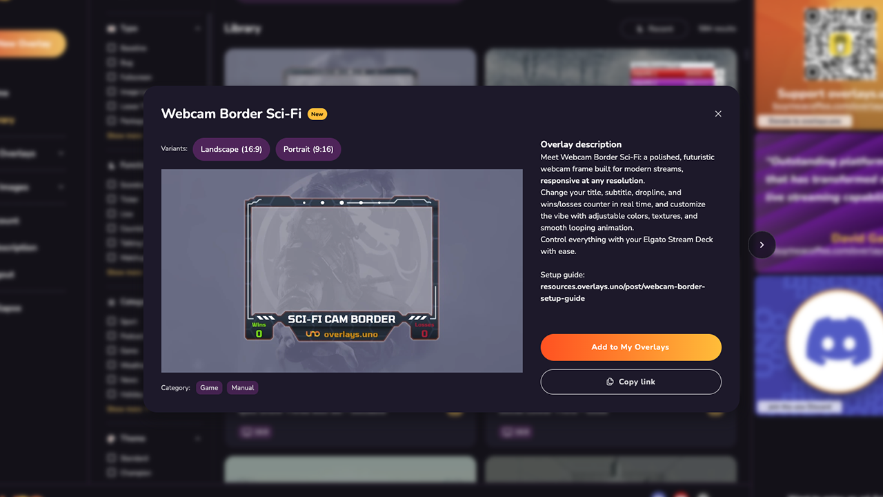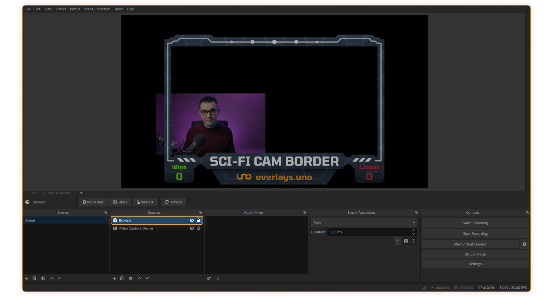 First, grab yourself a free uno Webcam Border from the overlays.uno library.